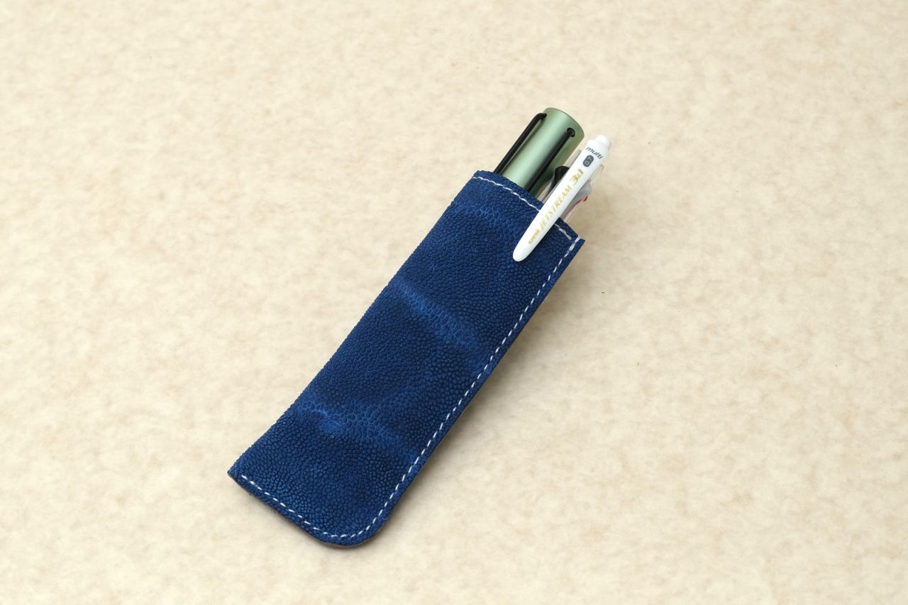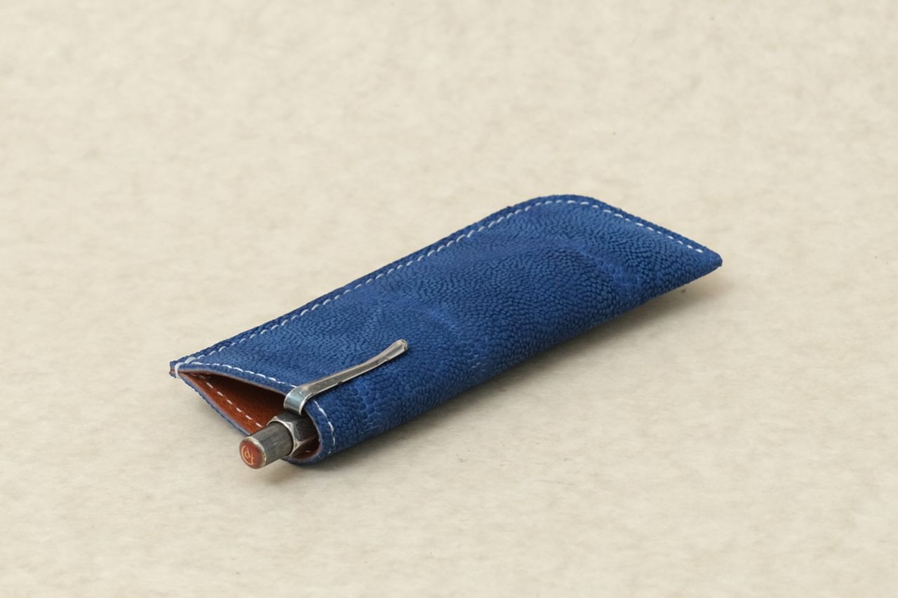 フランスブルーのゾウ革ペンケース